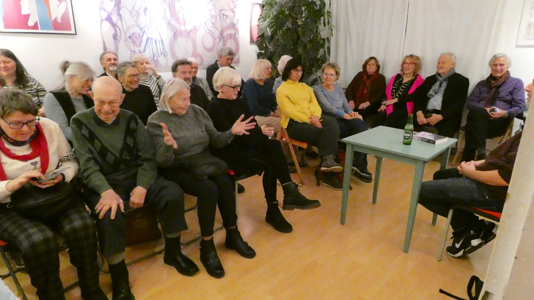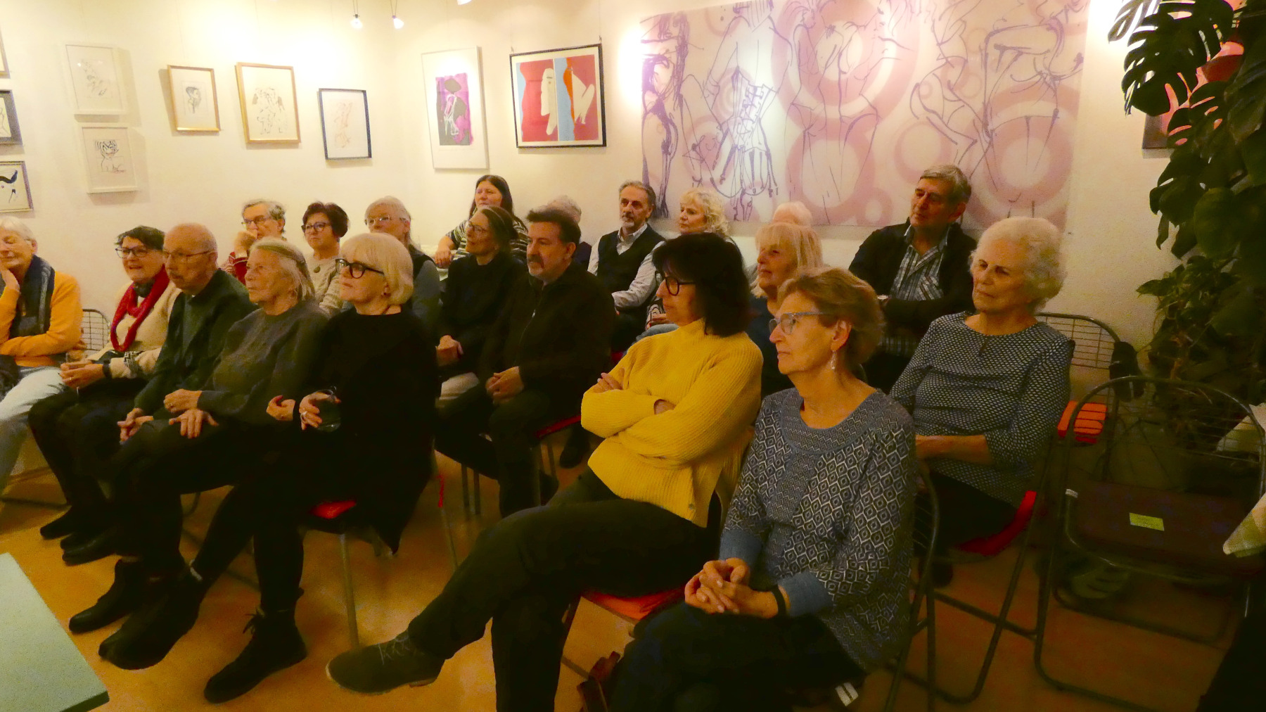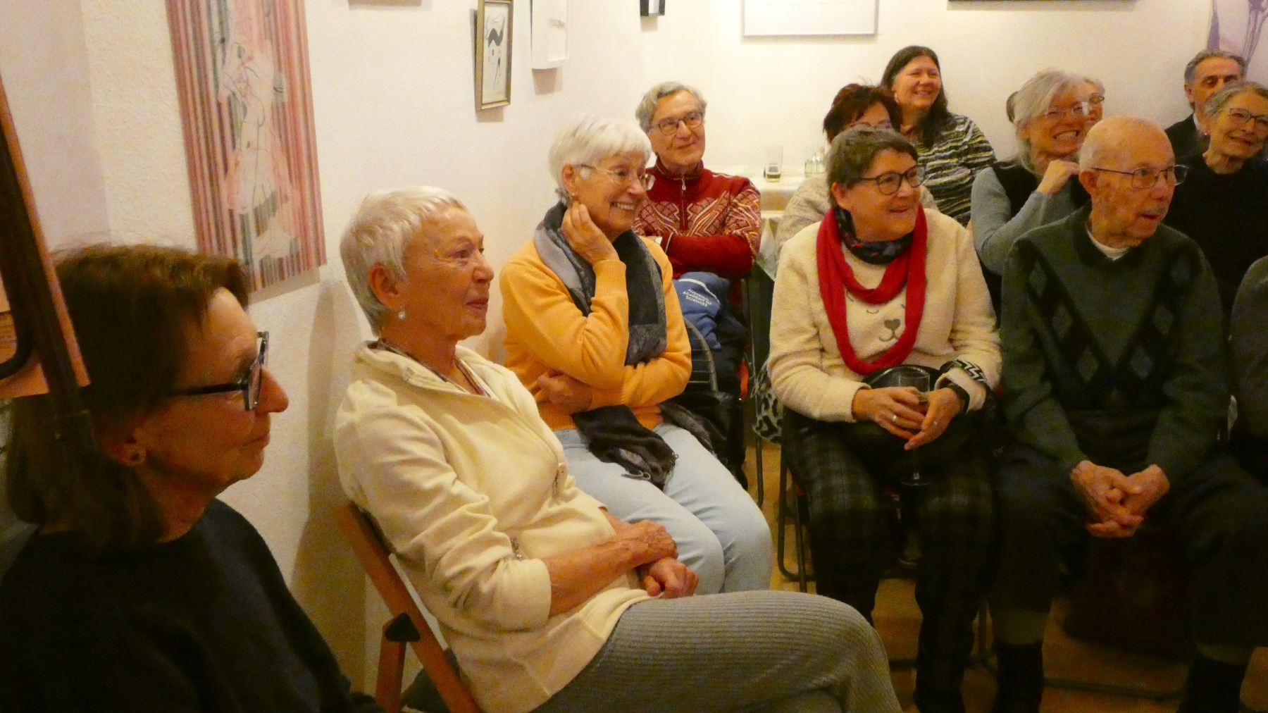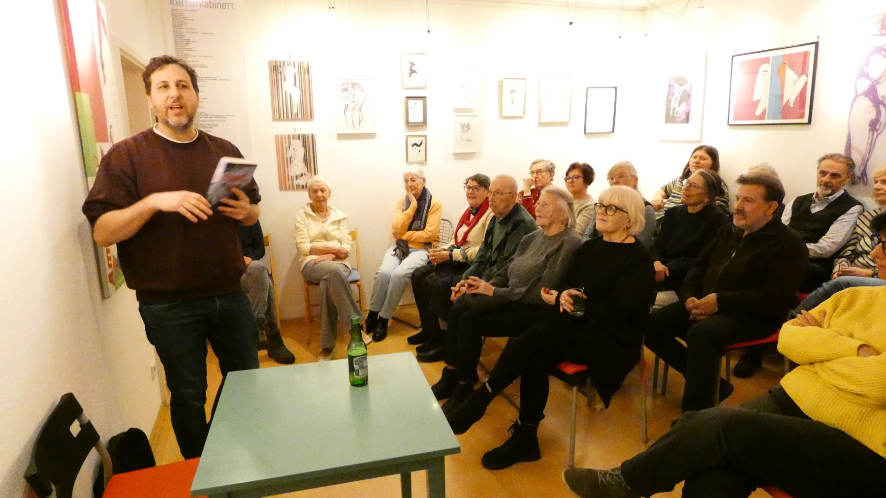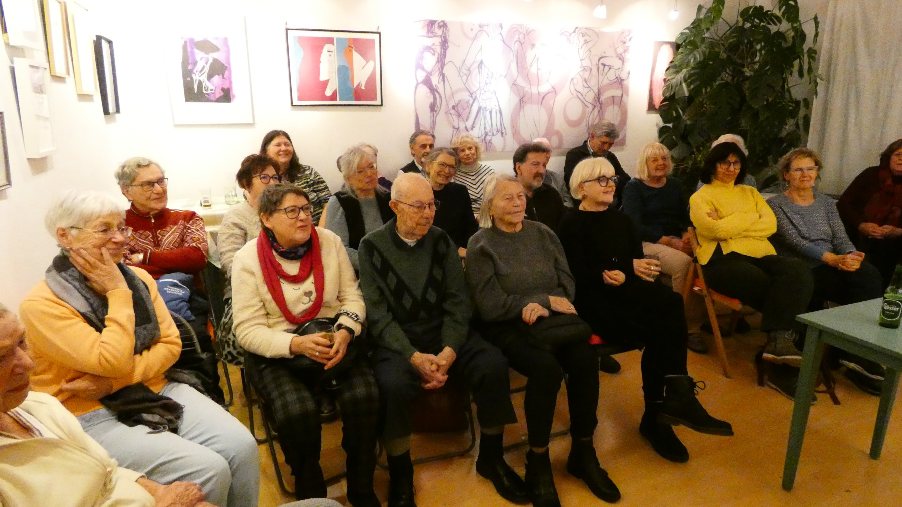 Glatter geht´s nicht mehr, nicht nur auf der Straße, auch bei DUNKEL NAH ist alles glatt gegangen! Das Glatteis hat weder Roman Klementovic noch die Gäste abhalten, ins Kulturkabinett zu kommen. Dort war es kuschelig warm, die Lesung spannend, Romans Zwischeng´schichterln launig. Daher war auch die zweite „Halbzeit“ sehr gemütlich und familiär. VEROs Bilder waren das Tüpferl auf dem I und machten den Abend zun Gesamtkunstwerk.