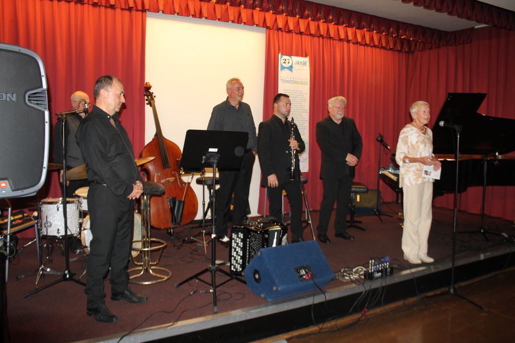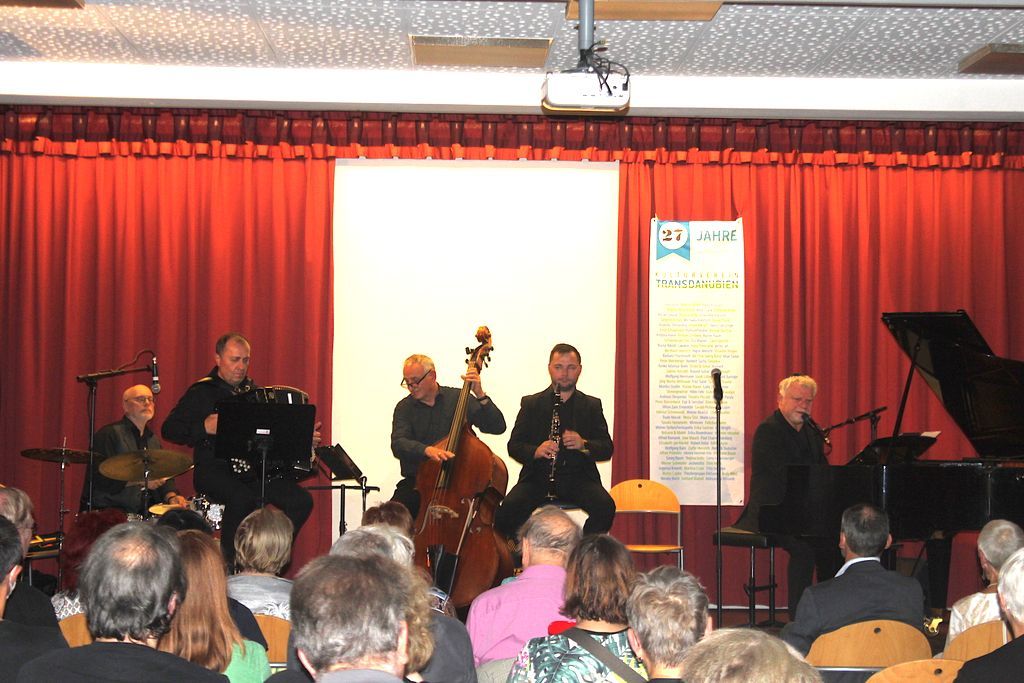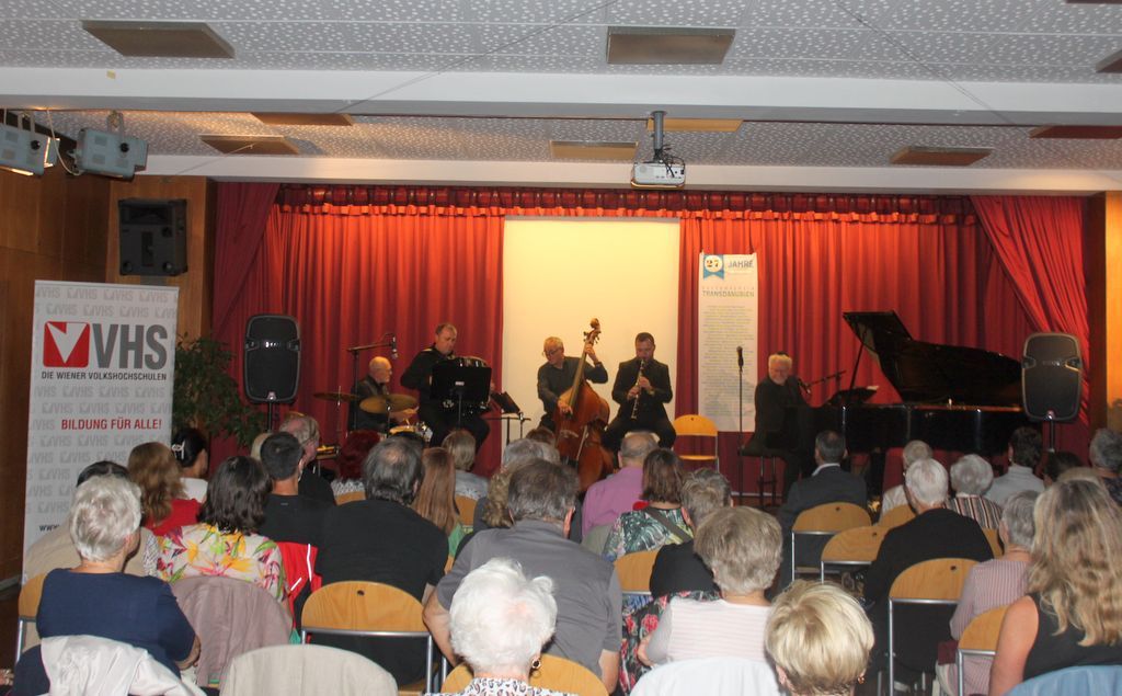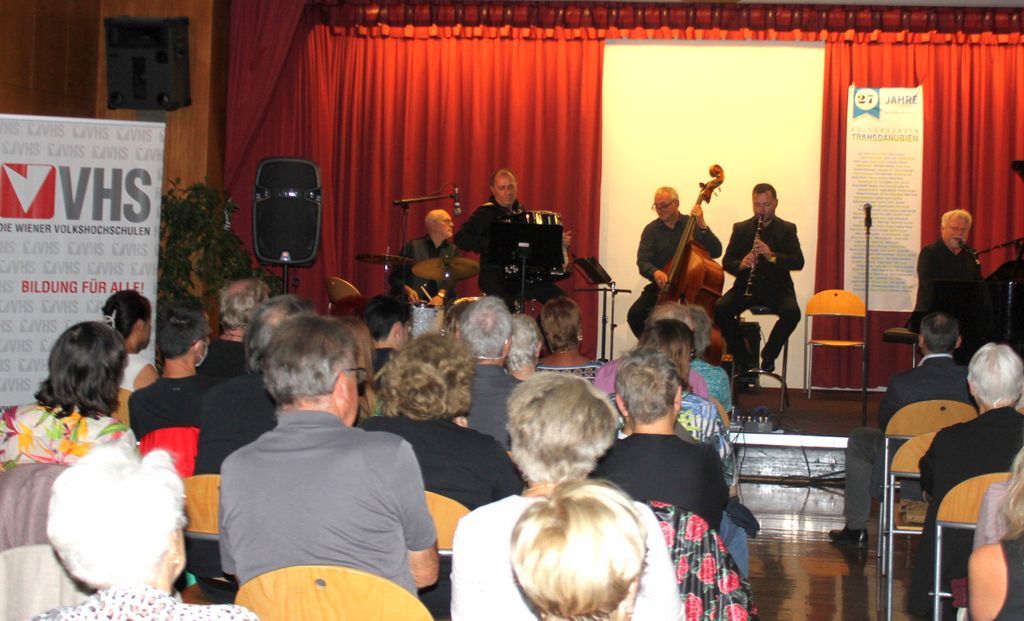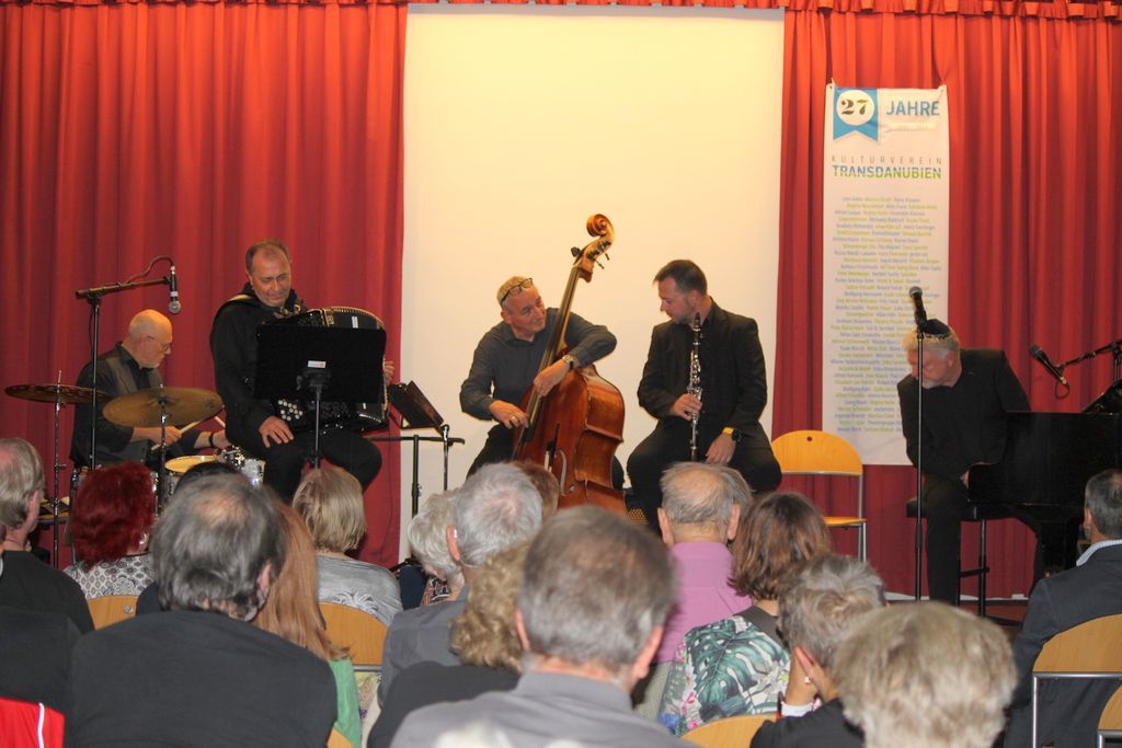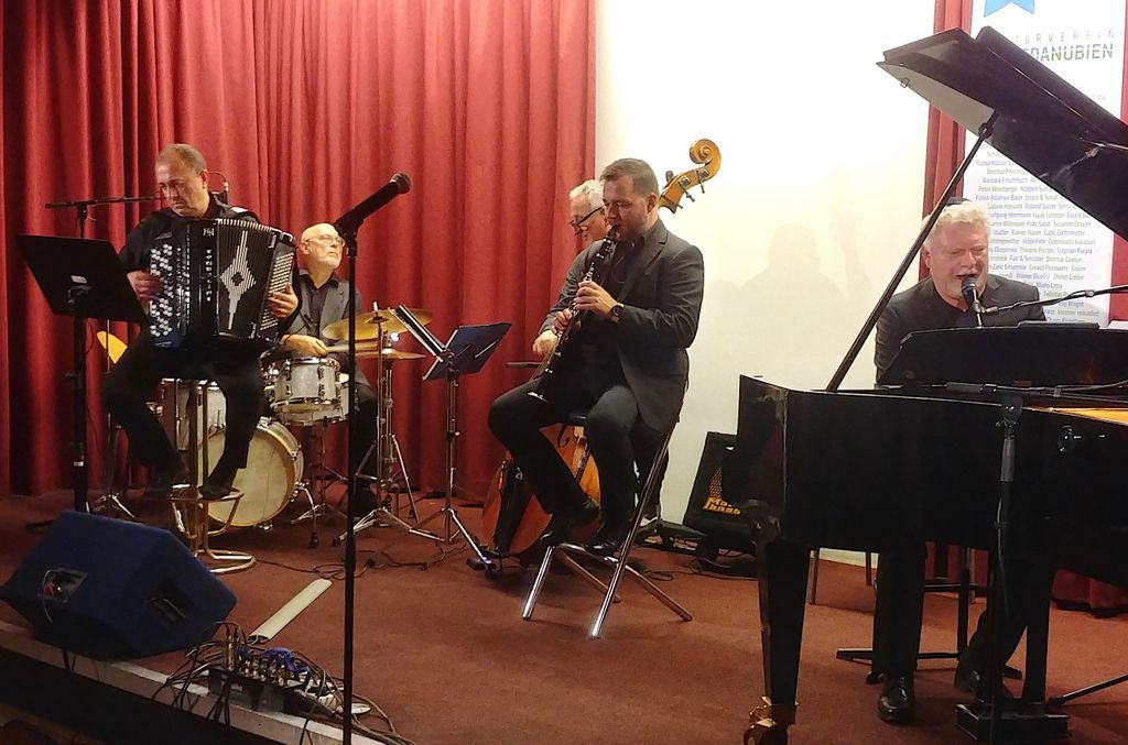 Das Klezmer Swing Quartett, bestehend aus Sasha Danilov – Klarinette, Peter Strutzenberger – Bass, Wolfgang Dorer- Schlagzeug und Roman Grinberg – Klavier, wurde zum Quintett! Roman Grinberg überraschte das Publikum mit dem Akkordeonisten Alexander Shevchenko. Eine gelungene Bereicherung des Ensembles beim musikalischen Vergnügen. Interessiert lauschten die Gäste auch Grinbergs „Lehrstunde“ über die jüdische Musik und den amüsanten Geschichten zum Lachen, Nachdenken und Verstehen.