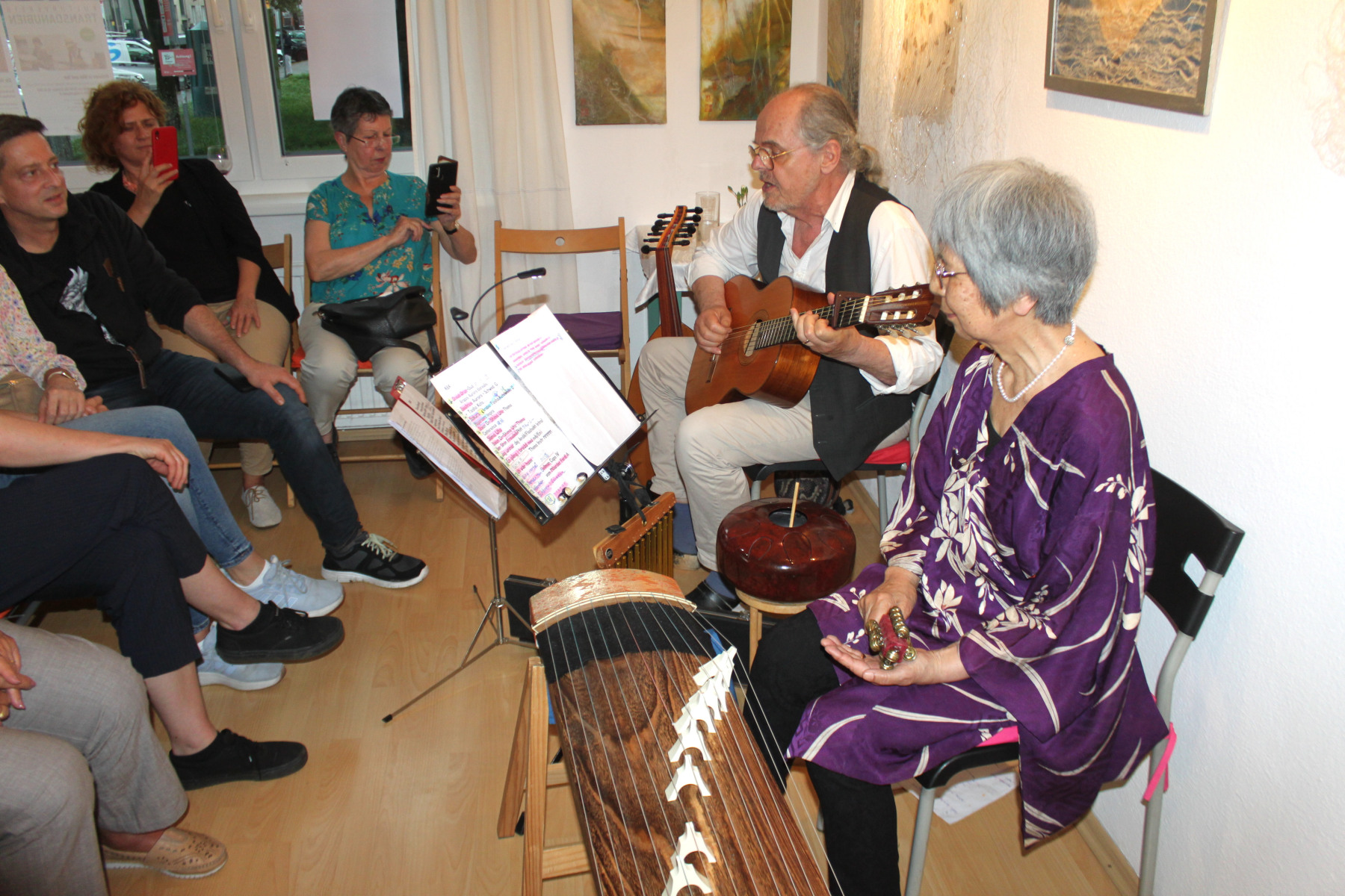 Was für eine gelungene japanisch-schwedische Verbindung: Im  Zusammenleben zweier Menschen, in ihrer Musik und in ihrer Malerei herrscht Harmonie. Im Kulturkabinett wurde die Präsentation ihrer Kunst fröhlich und sehr familiär zum Gesamtkunstwerk. Ein rundum glücklicher Abend 👍🤗
